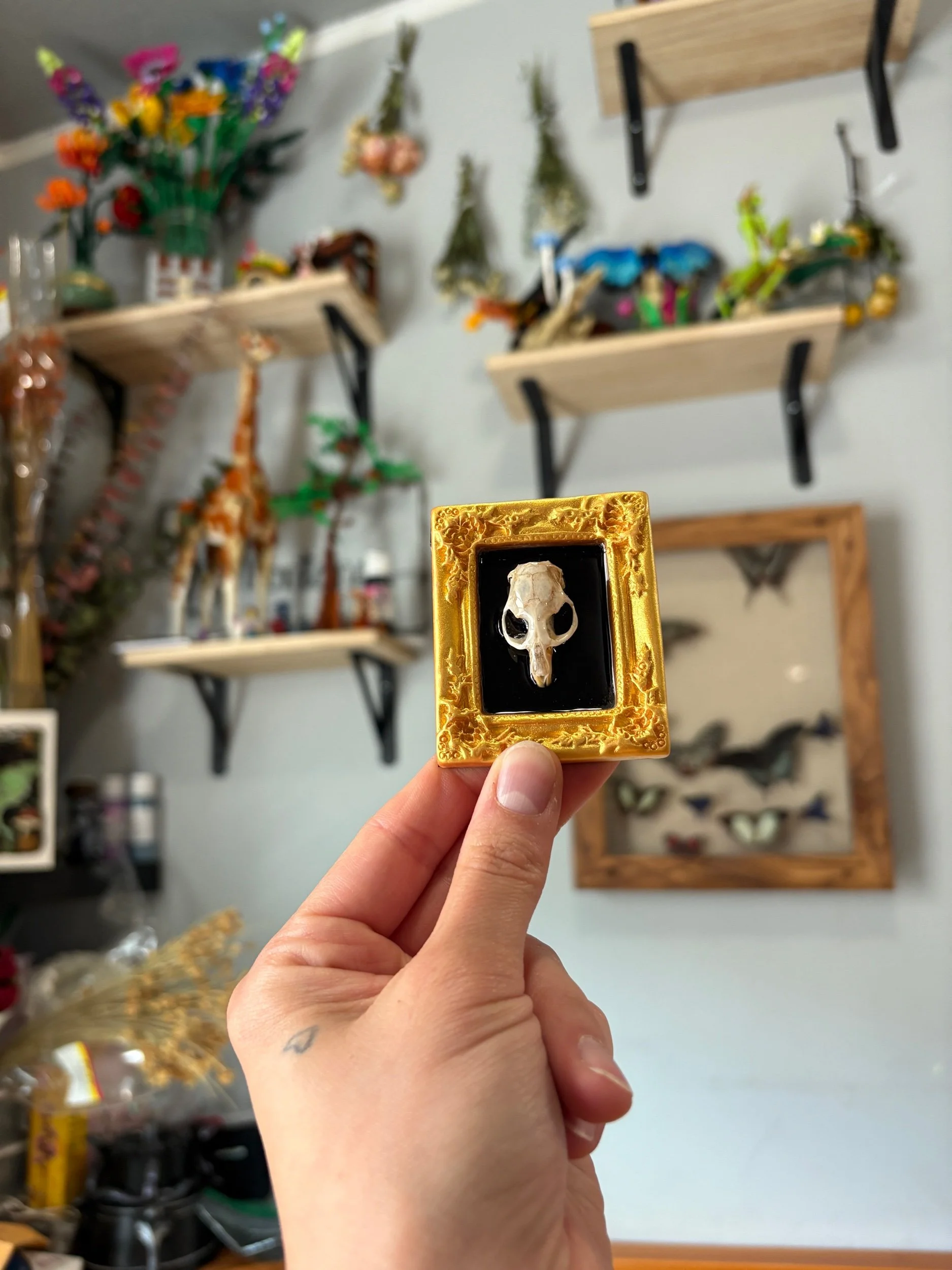 FRAMES AND DOMES › Mouse skull mini hanging frame Image 1 of 1 Mouse skull mini hanging frame $10.00 sold out Sold Out Added!