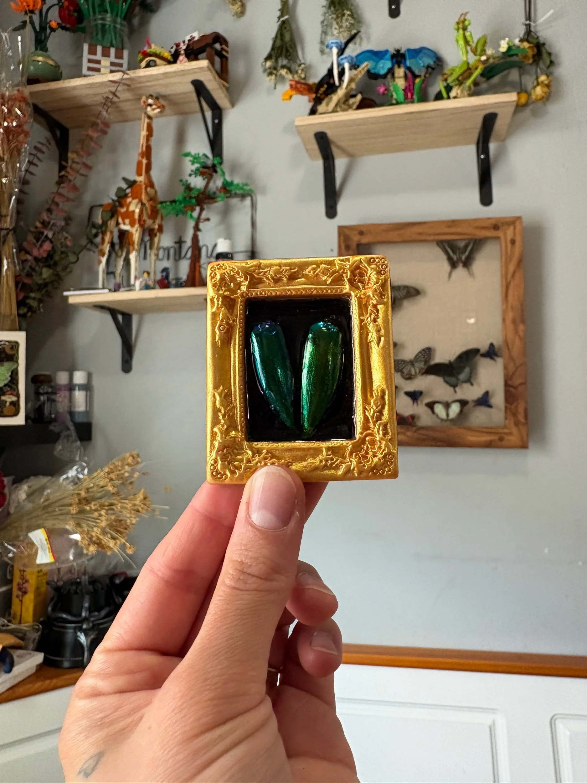 FRAMES AND DOMES › Jewel beetle heart mini hanging frame Image 1 of 1 Jewel beetle heart mini hanging frame $9.00 sold out Sold Out Added!